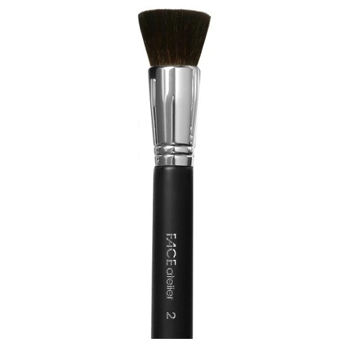 This ultra-luxe, dense brush with a level head features a circular bundle of natural bristles with flattened tips for superior results. One of FACE Atelier’s most versatile brushes, the soft buffer can be used for depositing product, blending, and polishing. It’s the fave for applying blush to the apple of the cheek. Pros often use this brush to ‘polish’ the foundation for a flawless finish.